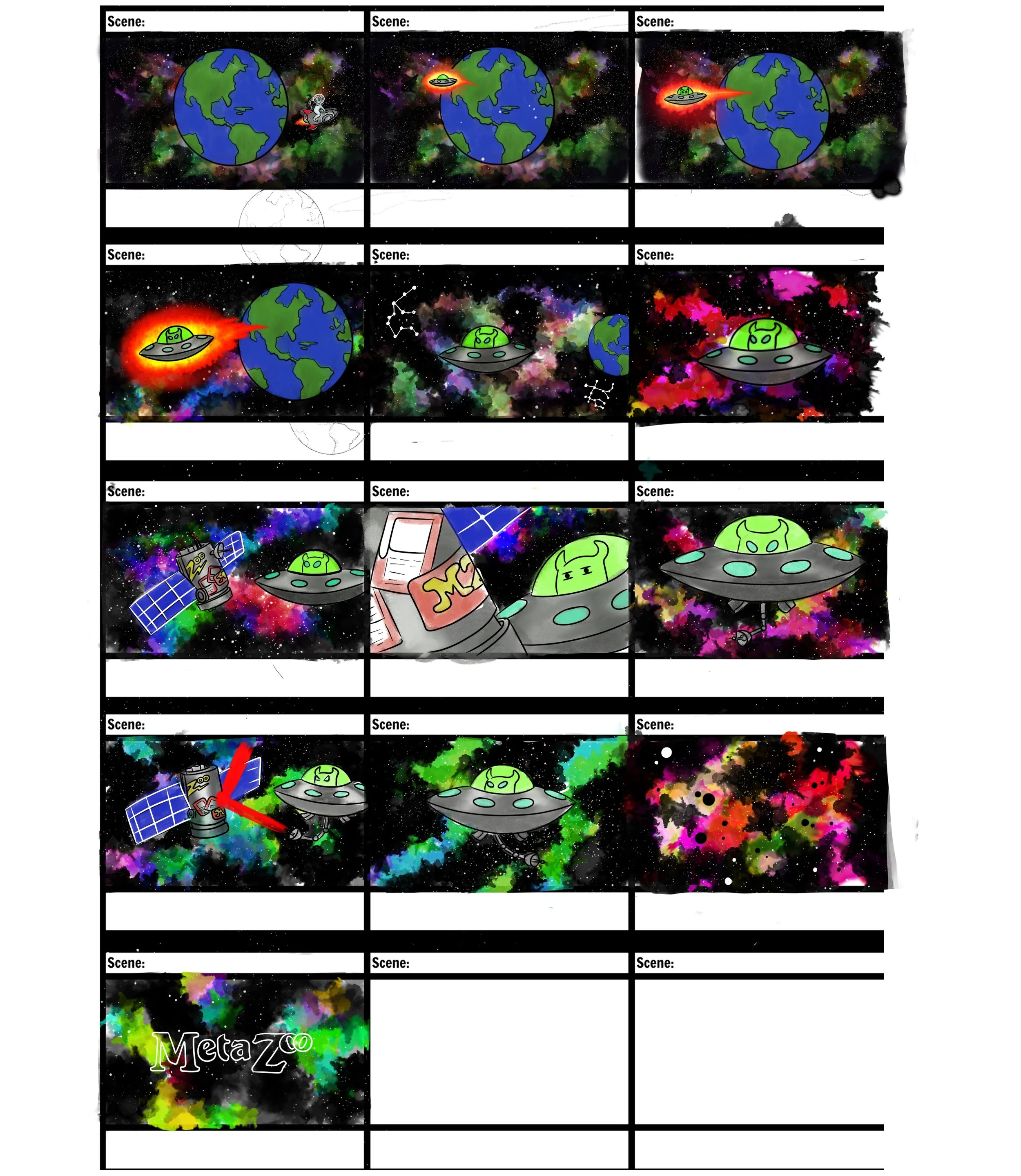 Cards sent to orbit as part of MetaZoo’s UFO set release, provided artwork for card design and storyboarding for animation. (2022)